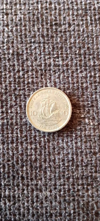 Moneda de 10 céntimos de los Estados del Caribe Oriental, con fecha de 1986.