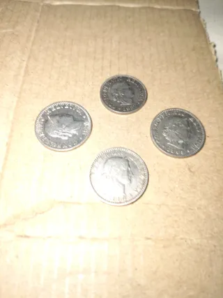 4 Monedas Suizas 1x10 y 3x20 céntimos MUY antiguas
