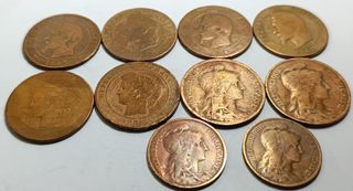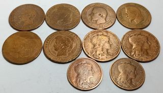 Lote 10 monedas cobre Francia 5 y 10 cent.
