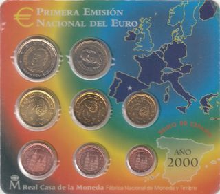 Conjunto de monedas de Euro de España, presentadas en su embalaje original y sin haber circulado. - Incluye las monedas de diferentes céntimos y euros. - Diseño nacional de España. - Año de emisión: 2000 - 2002 - 2003 - 2005 - 2007 - 2009 Precio de un set normal son 10 € Precio de un set con 2 monedas de 2 euros una de ellas conmemorativa son 15 € SE PUEDEN COMPRAR INDIVIDUALMENTE