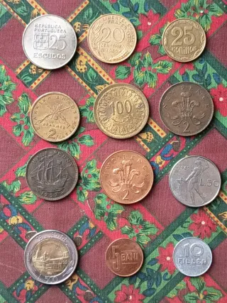 Conjunto de monedas de diferentes países y épocas. 100 Liras Italia FAO 1979 R SC 1€ 20 Escudos Portugal 1986 0.40€ 5 Bani Rumanía 2012 0.10€ 6 Peniques Reino Unido 1966 0.50€ 2 Grosze Polonia 2003 0.10€ 20 Céntimos Francia 1985 0.20€ 10 Centavos Portugal 1967 0.80€ 5 Cents Malta 1976 SC 1.20€ 10 Escudos Portugal 1971 SC 2€ 200 Liras Italia 180 Aniversario de los Carabinieri 1994 R 1.50€ EBC 100 Liras Italia 1977 R 0.45€ 1 Dinar Serbia 2006 0.25€