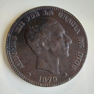 10 céntimos España 1879. Cobre. Alfonso XII. MBC.