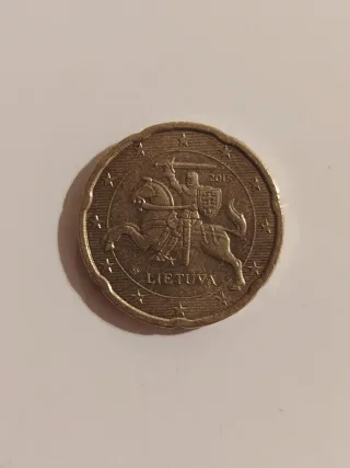 Moneda de 20 céntimos de Lituania del año 2015. - Diseño de Vytis (el jinete). - Borde con estrellas y el nombre del país. - Año de acuñación: 2015. Dispongo de más monedas y billetes en mi perfil, hago lotes.