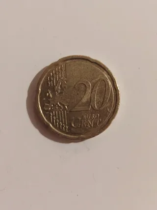 Moneda de 20 céntimos de Euro, acuñada en Italia en el año 2020.