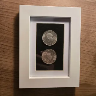 Cuadro decorativo de 12 x 16 cm 2 monedas originales de 5 pesetas (año 1949 50) ✨ Perfecto para iniciarte en la numismática o completar tu colección. 📌 Pieza con historia, ideal también como regalo original. ✔️ Monedas auténticas y circuladas ✔️ Recibirás exactamente las de las fotos ✔️ Presentación en cuadro listo para exponer ✔️ Envío seguro mediante Wallapop 💡 Hago lotes personalizados → unifica pedidos y ahorra en envío 📦 También disponible: lotes de monedas de 1, 2 y 5 céntimos de euro de España 📆 Años: 1999 – 2025 💰 Consulta sin compromiso 🛒 Visita mi perfil para más monedas y coleccionables #monedas #numismatica