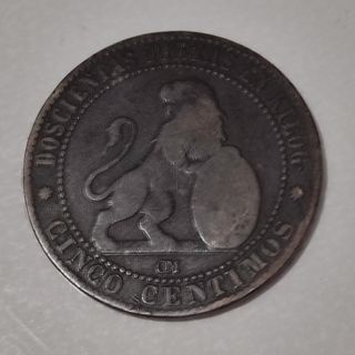 Moneda España 5 céntimos año 1870.