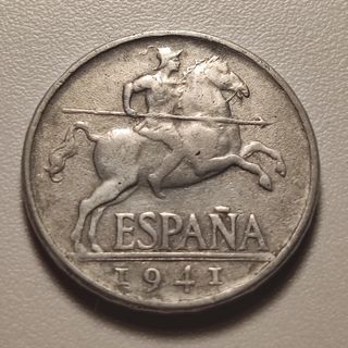 Moneda de 5 céntimos del año 1941 "Perra Chica", Jinete Ibérico, de aluminio, estado de conservación MBC tal como se ve en la foto. Se combinan envíos con otras monedas de mi perfil, opción de envío y pago por wallapop o pago por bizum y envío ordinario (más económico).