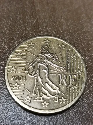 Moneda de 50 céntimos de euro de Francia, año 2001. - Diseño de Marianne. - Borde con estrellas. - Inscripción RF.