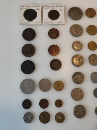 Vendo lote de monedas consta,3 estuches de Expo del 82,41 monedas de 5 pesetas,2 monedas de 100pesetas,2 monedas de 25 pesetas,3 monedas de 25 pesetas de agujero,1 monedas 25 céntimos,2 monedas de 50 céntimos,2 monedas 1 peseta,y 1 de 2 pesetas,todas en buenas condiciones, preguntar sin problema y os digo el año