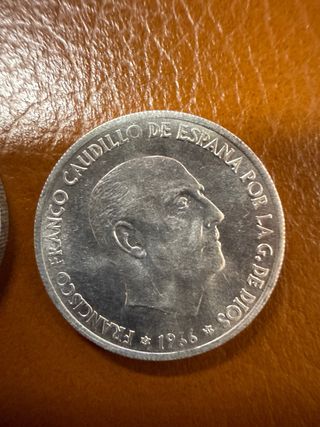 Moneda conmemorativa de 50 céntimos de España, año 1966. - Anverso: Retrato de Francisco Franco Caudillo de España. - Reverso: Inscripción POR LA G. DE DIOS y el año 1966.