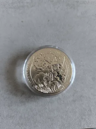 Moneda de plata de 1 onza de Ruanda con diseño de rinoceronte. - Año: 2012 - Peso: 1 oz - Metal: Plata - Diseño: Rinoceronte africano