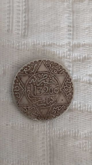 Rara moneda de plata antigua de 1903. Se encuentra en buen estado de conservación, con detalles visibles por el paso del tiempo. - Moneda 2,5 dirhams. - Fecha: 1320c (correspondiente al calendario islámico). - Sultán, Abdelaziz ( 1894-1908). - Diseño detallado con escritura árabe.