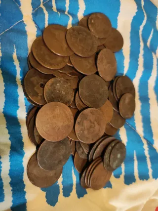 Lote de 76 monedas antiguas de cobre. - Material: Cobre. - Cantidad: 76 unidades.