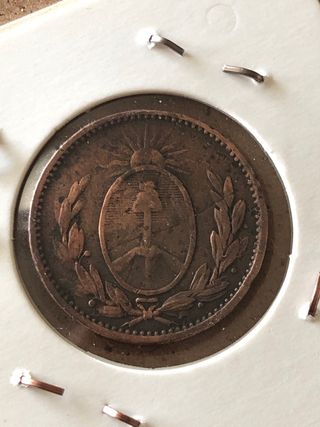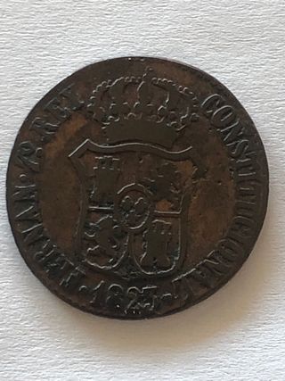 Se ofrece una moneda de un décimo de Buenos Aires, acuñada en 1823. Es una pieza antigua de cobre, con detalles visibles en ambas caras. - Moneda de cobre. - Fecha de acuñación: 1823. - Presenta detalles propios del paso del tiempo.