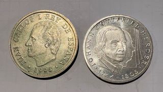 Lote 2 Monedas: 2000 PTAS y 10 DM Plata