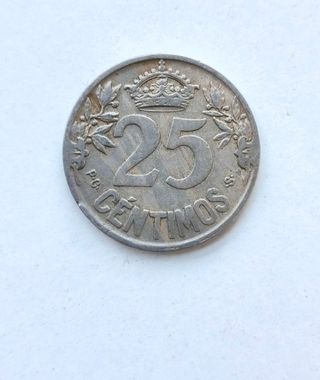 25 CENTIMOS DE 1925 ESPAÑA Tag: Moneda Antigua Centims Cooperativa Alfonso Alfons Pere VIII IV VII Torello Centimos Fraternitat Obrera 1 Peseta 1947 Francisco Franco 1944 Estrella 2,50 Pesetas Numismatica 1/2 Caudillo Dictador Dictadura 1 Una Peseta 56 Plata Dolar Billete Monedas Medallas Medallones España Española 54 República Filatelia Real Euro Regimen Plata Acuñada Error Metal Rubia Cobre Esfinge