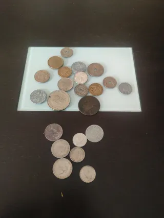 Conjunto de monedas antiguas de España, ideales para coleccionistas. Alguna puede ser de plata - Variedad de diseños y épocas. - Piezas con historia y carácter.