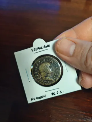 Moneda antigua de Vespasiano, datada en el año 75 D.C. - Tipo: Dupondio. - Emperador: Vespasiano. - Año: 75 D.C.