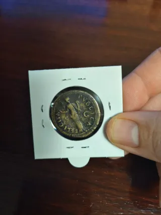 Moneda antigua con un diseño detallado. - Material: Bronce - Diseño: Rostro o figura en relieve