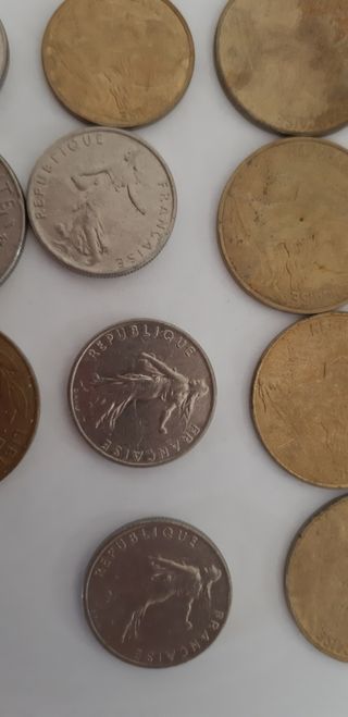 moneda franco francés más de 30 años muy buscadas.mira las fotos. las tenía guardadas mas de 25 años de estas no hay en la calle.