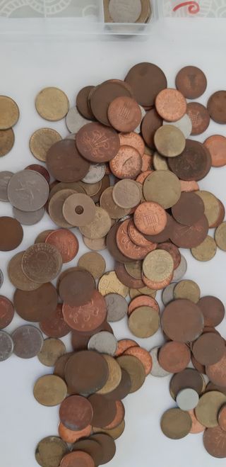 lote moneda algunas más de 40 años muy buscadas.mira las fotos. las tenía guardadas mas de 25 años de estas no hay en la calle.todo lo queseve en las fotos.creo que son más de 200 monedas.tienes que seleccionar una a una. para gente con paciencia.las fotos están en mi perfil.
