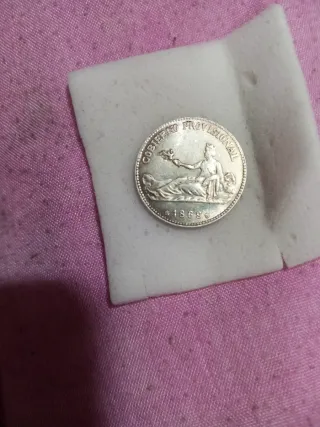 Réplica de moneda antigua con la inscripción Gobierno Provisional y el año 1869. - Diseño detallado. - Ideal para coleccionistas.