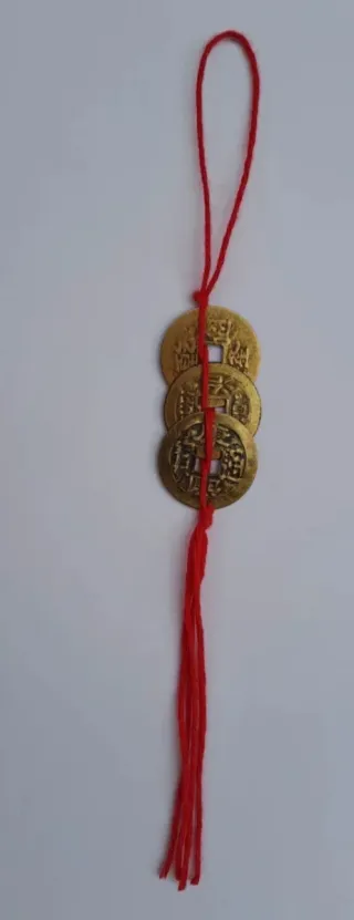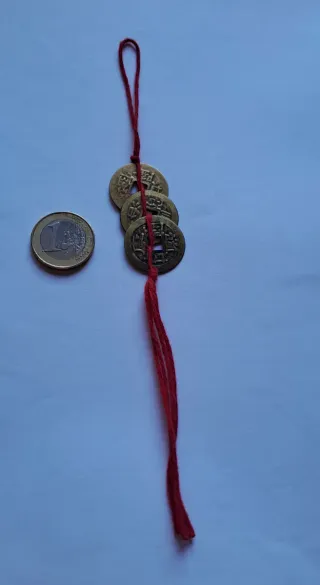 3 Monedas Chinas Antiguas con Cordón Rojo