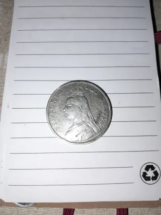 Moneda antigua con la efigie de Victoria Regina. - Diseño detallado de la reina Victoria. - Borde con inscripciones.