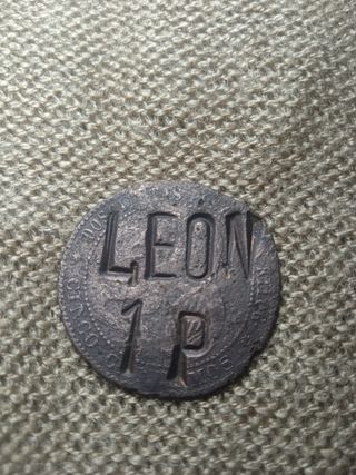 Rara moneda con letras escritas en un lado " LEON 1P", parece antigua pero no lo puedo asegurar por que era de un familiar. Esta algo gastada y poco convada. De circuferencia tiene 25mm.