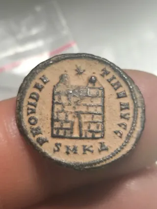 Moneda Romana Constantino I, puerta de campamento