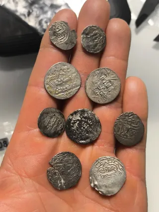 Conjunto de nueve monedas antiguas de plata de origen árabe. - Material: Plata. - Cantidad: 9 monedas.