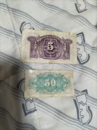 Billetes antiguos: 5 Pesetas 1935 y 50 Céntimos