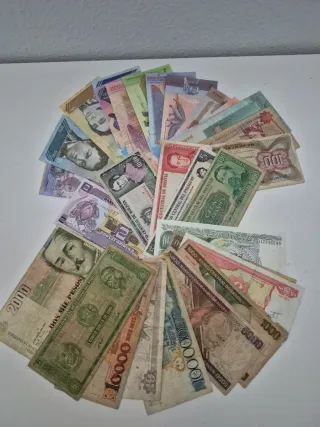 Colección de 34 billetes de diferentes países de América. Diferentes estados - Incluye billetes de Perú, Bolivia, Paraguay, Brasil y Venezuela. - Variedad de denominaciones y diseños. - Algunos muy antiguos
