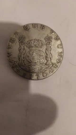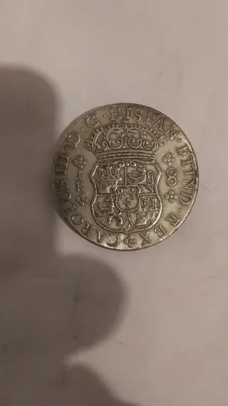 Moneda antigua de Carlos III, año 1770. Esta moneda es un columnario de 8 reales de 1770, acuñada durante el reinado de Carlos III. Estas piezas son famosas por el diseño del reverso que muestra las Columnas de Hércules flanqueando dos mundos coronados sobre ondas marinas, simbolizando el dominio español sobre el Viejo y el Nuevo Mundo. Características Principales Valor facial: 8 Reales (también conocido como "Spanish Dollar"). Año de acuñación: 1770.
