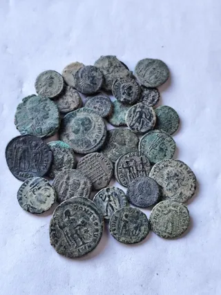 Conjunto de monedas romanas antiguas, cada una con su propio diseño y pátina.Interesante lote de antiguas monedas romanas para limpiar autenticas siglo III dc envios combinados - Piezas de colección con detalles históricos. - Variedad de acuñaciones y emperadores. - Ideal para numismáticos y aficionados a la historia.