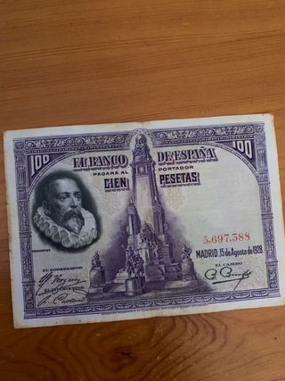 Vendo billetes antiguos de 100 pesetas de la República Española encontrados por mi bisabuelo en una casa bombardeada durante la Guerra Civil Española.
