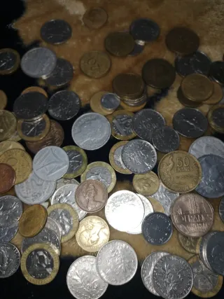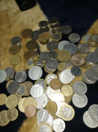 Colección de monedas antiguas. Son monedas de diferentes países y épocas, algunas presentan señales de desgaste por el paso del tiempo. - Variedad de monedas antiguas. - Monedas de diferentes países y épocas. - Algunas muestran señales de uso.