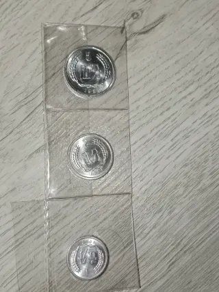 Conjunto de 8 monedas de pesetas, ideales para coleccionistas. - Monedas de diferentes valores y épocas. - Diseños variados con escudos y símbolos españoles. - Piezas de colección para tu álbum. Son : - 50 pesetas mundial 82, 5 pesetas 1983,1 peseta 1975, 1 peseta mundial 82, 2 pesetas 1984, 5 pesetas mundial 82, 5 pesetas 1957 y 2,5 pesetas 1953.