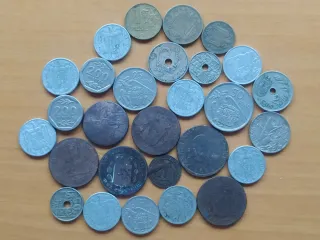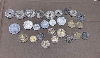 Lote de 32 monedas antiguas de pesetas céntimos, duros ...de todo tipo y años todas diferentes vendo el lote completo tal cual fotos y estado ...no colecciono