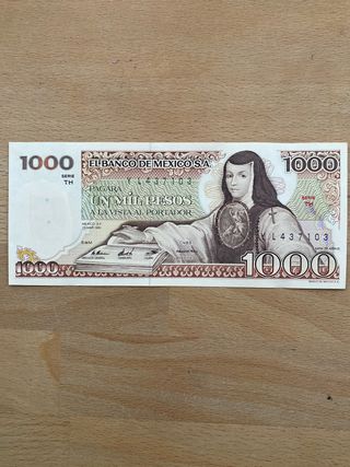 Pongo a la venta este billete de 1000 pesos mexicanos, serie TH, de 1982. Es un artículo de colección. - Billete de colección en perfecto estado. - Muestra imágenes de Sor Juana Inés de la Cruz y la Catedral Metropolitana de la Ciudad de México. - Ideal para coleccionistas de billetes antiguos mexicanos. Mas billetes en mi perfil.