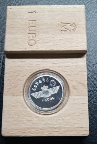 Mas monedas y billetes en el perfil. Se hacen lotes. Moneda conmemorativa del avión Maurice Farman MF-7. - Diseño detallado del biplano. - Año de emisión: 1997. - Presentada en un soporte de madera. Monedas antiguas. Monedas españolas. Colección. Lotes. Plata