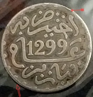 ADMITO OFERTAS - Moneda antigua de Marruecos, con fecha de 1299 de la ( Hégira ). - Moneda de PLATA: - Pureza- 0'8349milesimas. - CECA ( París ), Acuñación. - Emisión 6.900.000un - Pesó - 2'83gr. - PRESENTA ERRORES ACUÑACIÓN: Cospel y Descentramiento, Produciendo En Algunas partes del Cantó Doubled-Die. - Inscripción en árabe. - Diseño detallado.