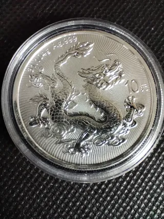 Moneda de plata, año 2025. Dragón, China 20 onzas disponibles - Plata 999 - Diseño de dragón - Valor de 10 Yuan