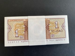 Lote de 100 billetes de 1 Jiao de China, emitidos en 1980. - Cada billete tiene un valor de 1 Jiao. - Año de emisión: 1980. - Procedencia: China. Disponemos de mas tacos igual a este El numero de serie puede no coincidir con el de la foto