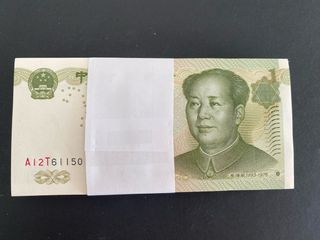 Fajo de billetes de 1 Yuan de China sel año 1999, con el retrato de Mao Zedong. El número de serie del artículo que reciba puede ser diferente al que se muestra en la fotografía, salvo que se especifique lo contrario.