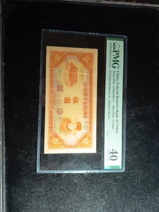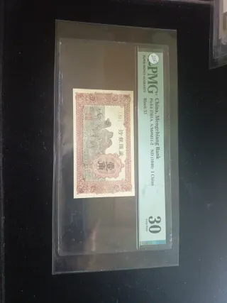 Billete de 1 Chiao del Banco Mengchiang de China, emitido en 1940. Certificado por PMG con una calificación de 30 (Very Fine). - País: China - Banco: Mengchiang Bank - Denominación: 1 Chiao - Año: ND (1940) - Pick #: J101A - Calificación PMG: 30 (Very Fine) - Bloque: 51