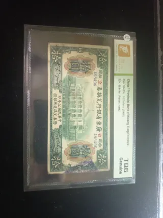 Billete de 10 dólares de la Provincia de Kwang Tung, China, emitido en 1918. - Pick S2403c. - Serie: 488496. - Impreso por ABNC. - Certificado por TQG como genuino.