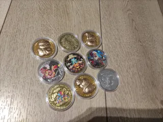 Conjunto de nueve monedas conmemorativas, cada una con un diseño único y detallado. - Diseños variados que incluyen figuras, animales y retratos. - Acabado dorado y plateado. - Ideales para coleccionistas. Lote de 31 monedas conmemorativas. Desde años nuevo chino, reina Isabel segunda de Inglaterra, halloween, navidad, Papa San juan 23, San Gadaxio primero y del rey Felipe Segundo.