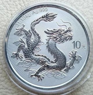 Moneda Plata Dragón Chino 1oz Ag.999 10 Yuan