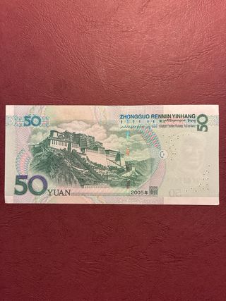Billete de 50 yuanes de China, año 2005. Se encuentra en condición sin circular (UNC). - Denominación: 50 yuanes. - País: China. - Año de emisión: 2005. - Condición: Sin circular (UNC).